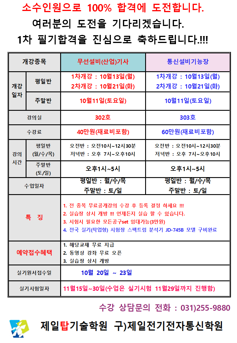 제 목 25년 4회 통신설비기능장 및 무선설비실기과정 개강일정